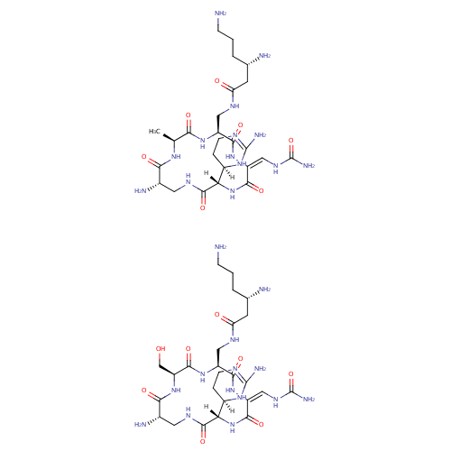 Little is known about capreomycin's exact mechanism of action, but it is thought to inhibit protein synthesis by binding to the 70S ribosomal unit. Capreomycin also binds to components in the bacterial cell which result in the production of abnormal proteins. These proteins are necessary for the bacteria's survival. Therefore the production of these abnormal proteins is ultimately fatal to the bacteria. |