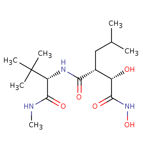 | Mechanism of action | Marimastat is a broad spectrum matrix metalloprotease inhibitor. It mimics the peptide structure of natural MMP substrates and binds to matrix metalloproteases, thereby preventing the degradation of the basement membrane by these proteases. This antiprotease action prevents the migration of endothelial cells needed to form new blood vessels. Inhibition of MMPs also prevents the entry and exit of tumor cells into existing blood cells, thereby preventing metastasis. |