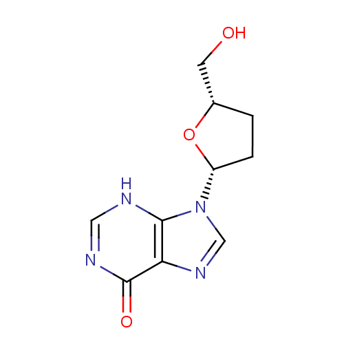 Description A dideoxynucleoside compound in which the 3'-hydroxy group on the sugar moiety has been replaced by a hydrogen. This modification prevents the formation of phosphodiester linkages which are needed for the completion of nucleic acid chains. Didanosine is a potent inhibitor of HIV replication, acting as a chain-terminator of viral DNA by binding to reverse transcriptase; ddI is then metabolized to dideoxyadenosine triphosphate, its putative active metabolite. [PubChem]