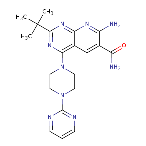 Name 7-amino-2-tert-butyl-4-(4-pyrimidin-2-ylpiperazin-1-yl)pyrido[2,3-d]pyrimidine-6-carboxamide